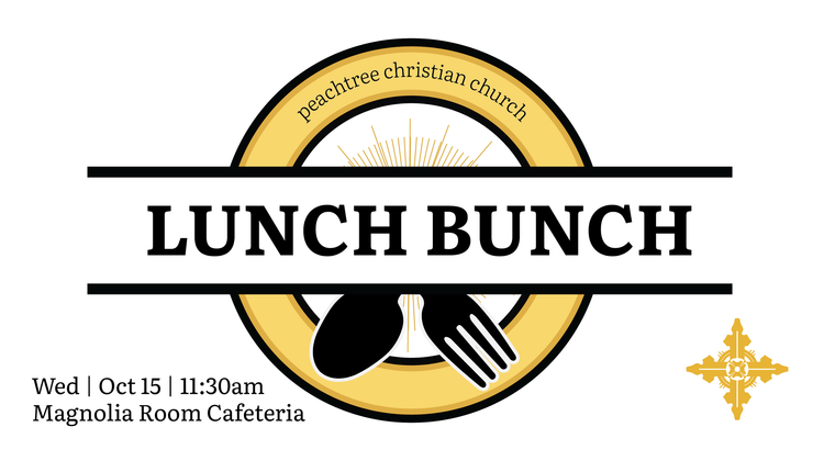 This month, Peachtree’s Senior Adult Ministry is heading to the Magnolia Room for our October “Lunch Bunch”! Join us for classic Southern cooking and warm fellowship in a charming and welcoming setting. Questions? Contact Rev. Katie Bond at kbond@peachtree.org