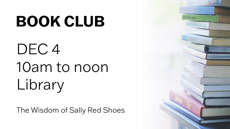 Thurs | Dec 4 | 10 AM | Library The Wisdom of Sally Red Shoes Join us on December 4 for a heartfelt discussion of The Wisdom of Sally Red Shoes by Ruth Hogan. This beautifully written novel follows Masha, a woman lost in grief who finds unexpected friendship and renewal through two unforgettable women—a roller-disco enthusiast and a mysterious singer known as Sally Red Shoes. Together, they remind her that even after great loss, life still sings.
